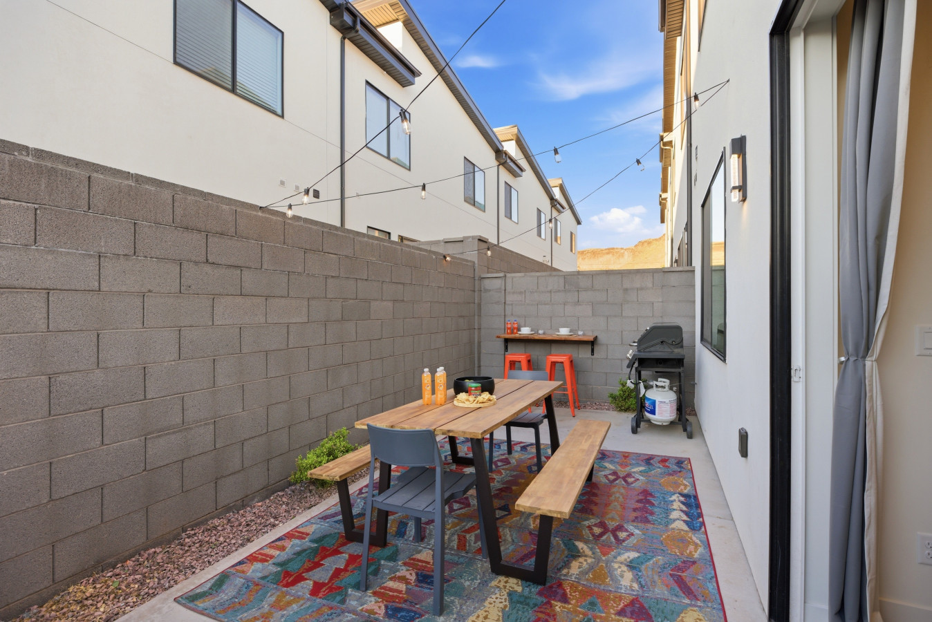 ✔ Patio with grill & bar top seating